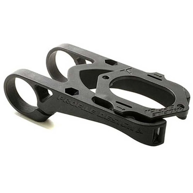 Soporte para portabidones Aerodrink, Aqualite o Aquacell. Montaje en la barra base con adaptador para portabidones estándar. Ajustes de ancho y ángulo independientes. Peso: 75g.